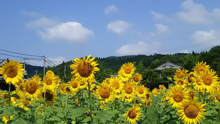 曲がりくねった道を進むと、一気に広がる、ひまわり畑