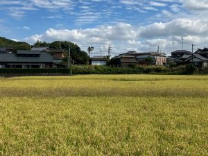 一方では刈り取りを待つばかりの黄金色の田んぼもまだありました